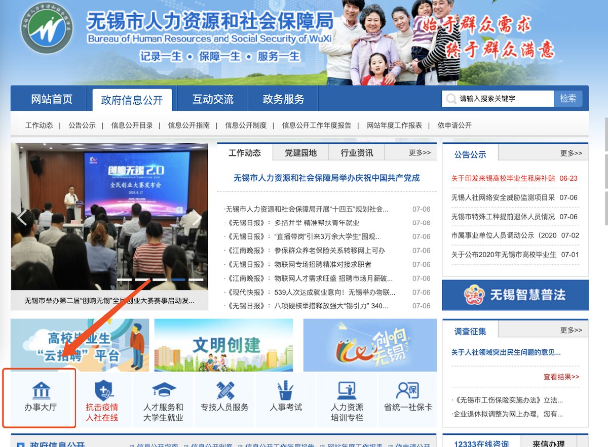 3、接收单位登录“无锡市人力资源和社会保障局”网站(http://hrss.wuxi.gov.cn)