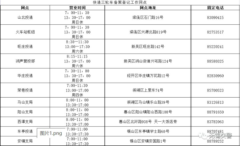 2021年9月10日前完成在无锡市范围内行驶的快递三轮车备案登记工作
