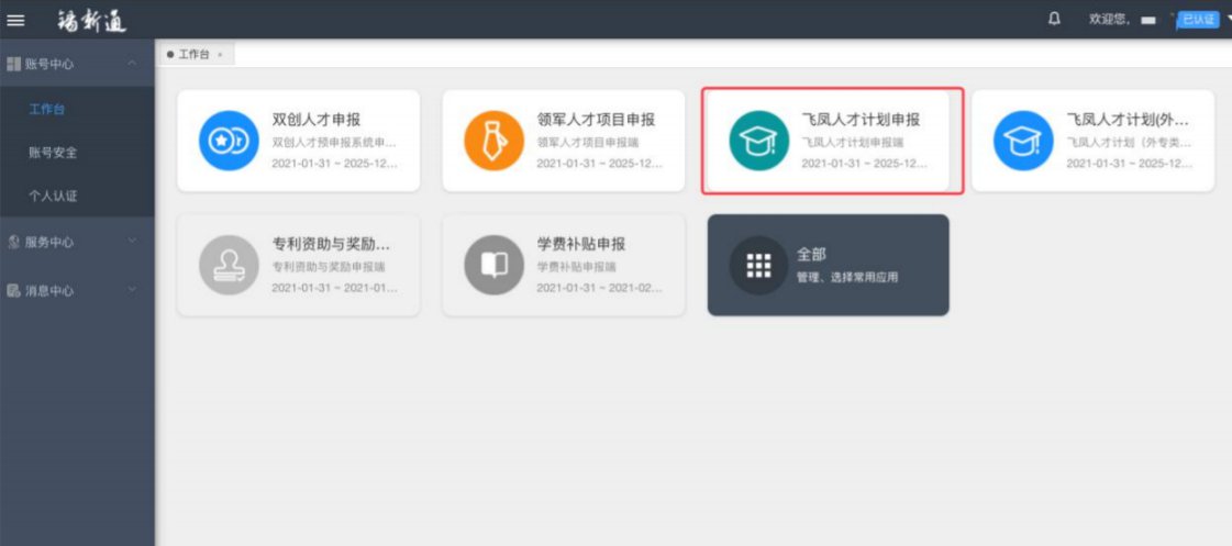 (五)进入飞凤人才申报系统点击“飞凤人才计划申报”进入对应系统
