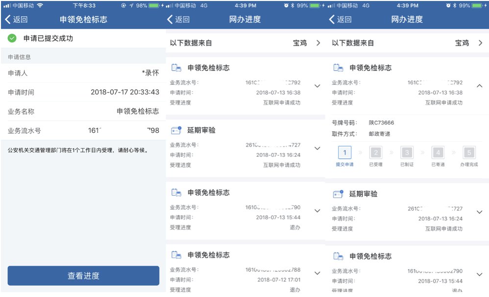 三、网上申请提交成功后,公安交通管理部门网办中心将在一个工作日内办理,期间您可以通过网办进度查询业务办理进度。