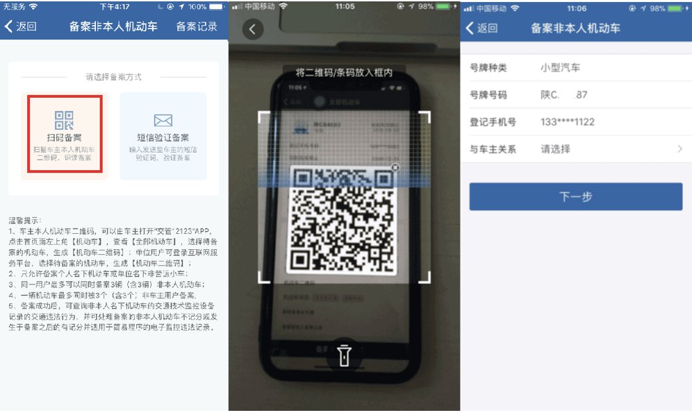 车主用户应当登录“交管12123”手机APP,生成待备案机动车二维码;