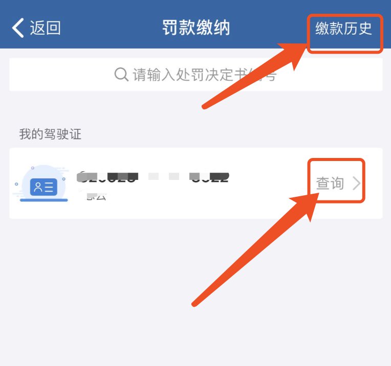 2、罚款缴纳栏打开后,可以在“我的驾驶证”通过点击查询来查找已被处罚的记录,也可以通过“缴款历史”来查询有无已被处罚的记录。