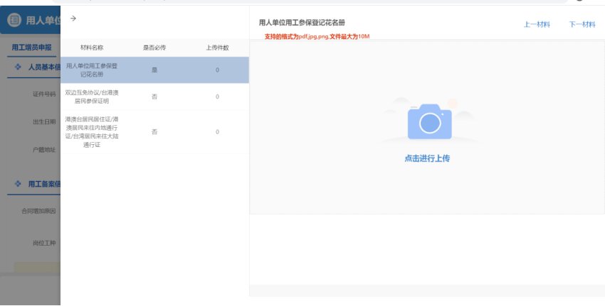 3.输入人员基本信息、用工备案信息、人员社保信息。