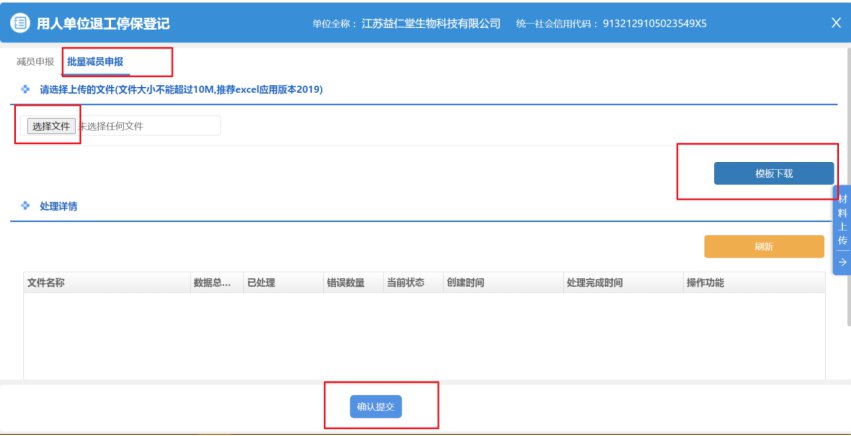 6.点击tab页“批量减员申报”,点击【模板下载】,下载模板。