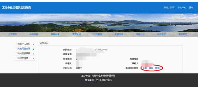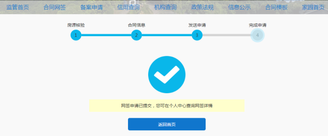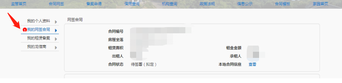 个人中心查看网签合同或下载合同,合同状态显示“已签署”,出租人用户或者承租人网签合同完成后,即自动完成合同备案,系统自动发送至监管平台的政府端进行审核。