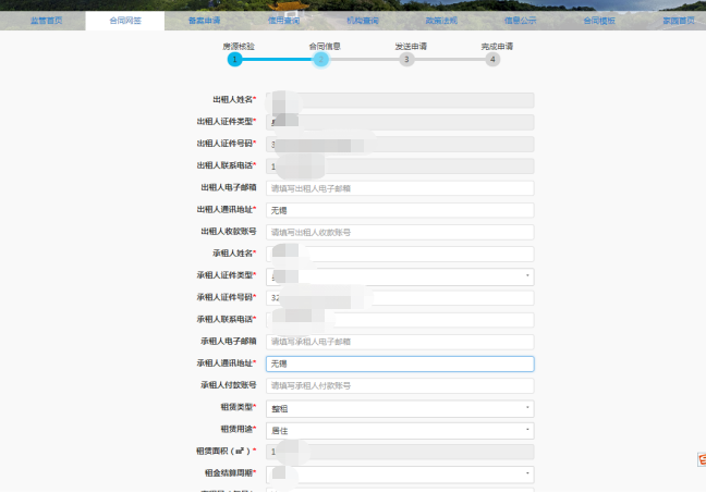 进入房源核验结果,查看房源核验后,点击下一步,进入网签界面,填写网签细节信息: