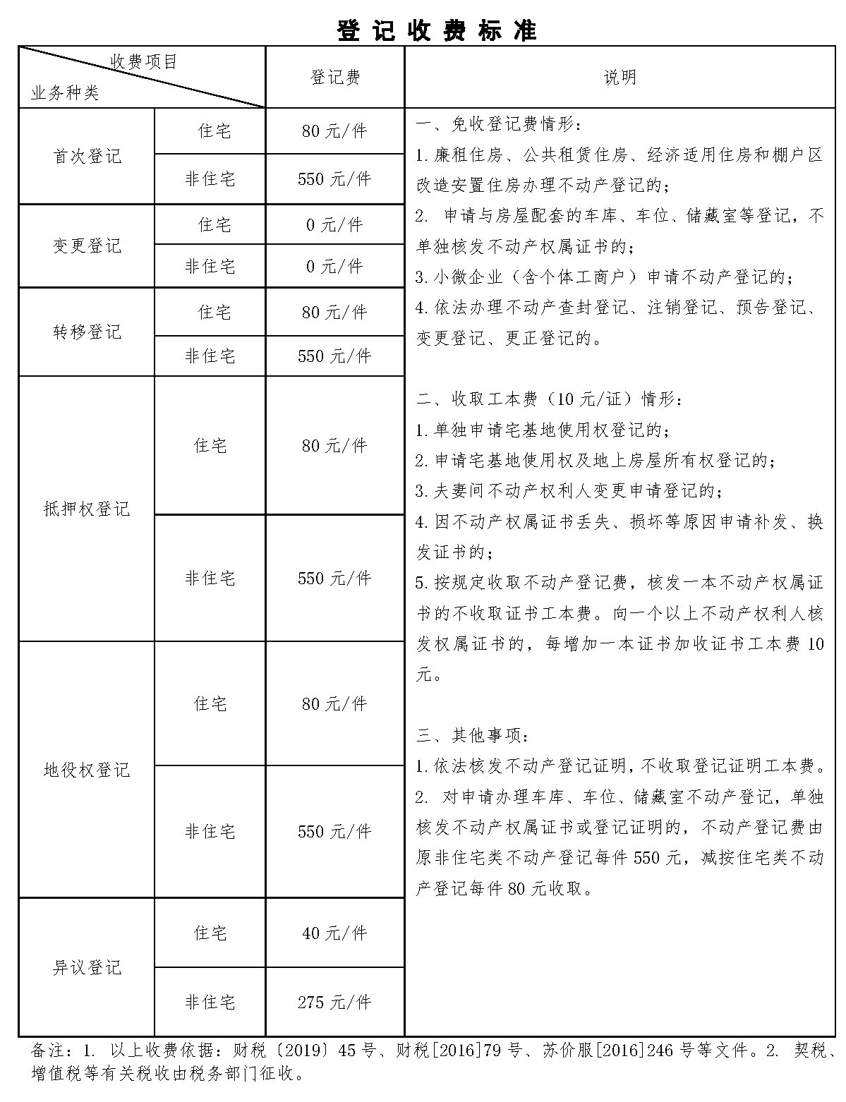 无锡不动产登记收费标准