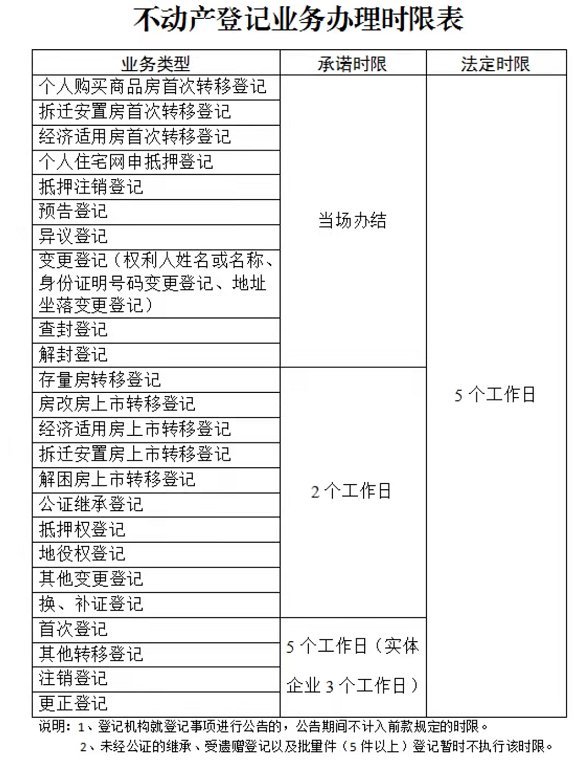 2、 未经公证的继承、受遗赠登记以及批量件(5件以上)登记暂不执行该时限。