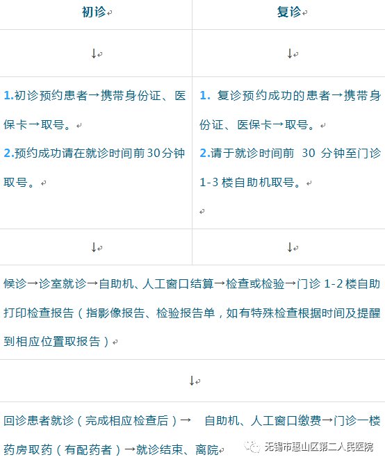 惠山区二院门诊预约挂号就诊流程: