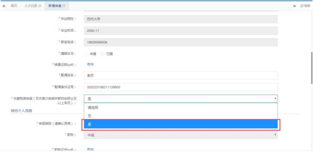 情形二:首次申报(夫妻双方申报)【夫妻购房申报】的下拉框请选择“是”