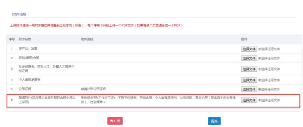 因为是单人申报,所以这边这个【配偶附件】不需要上传