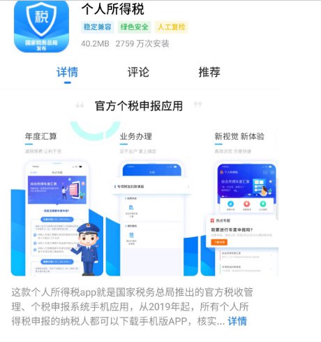 个人所得税是国家税务总局推出的官方税收管理、个税申报系统手机应用,从2019年起,所有个人所得税申报的纳税人都可以下载手机版APP,核实自己信息和身份后,在任何地方任何时候完成自己的税务申报义务。