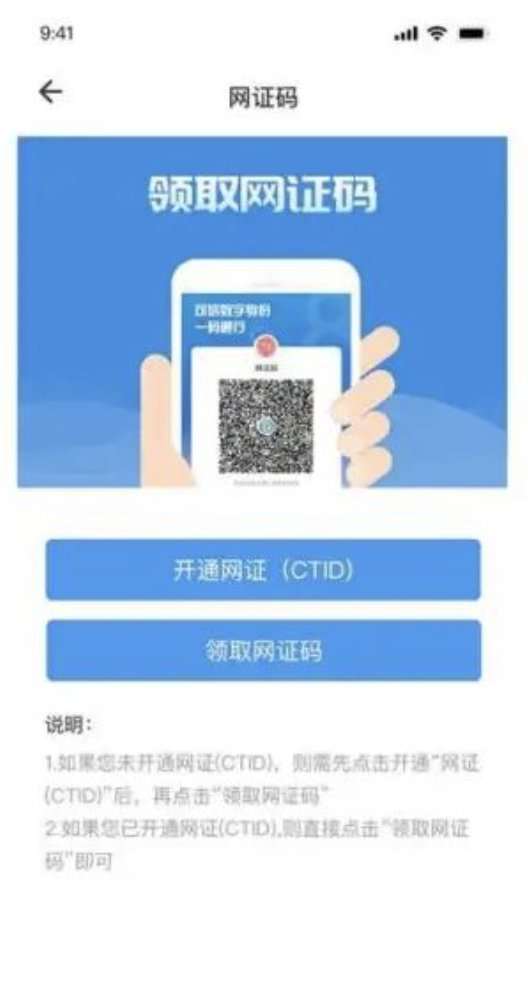7、先点击“开通网证(CTID)” 按钮,然后点击“领取网证码”按钮操作,即可成功申领网证码