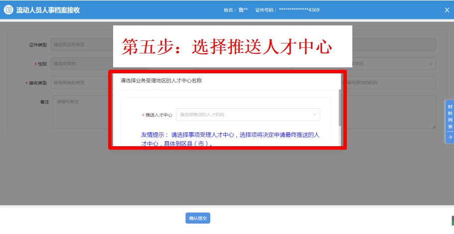 注:选择推送人才中心时,请选择户口所在地或工作单位所在地的区人才服务中心,市人才服务中心原则上只接受毕业生档案。