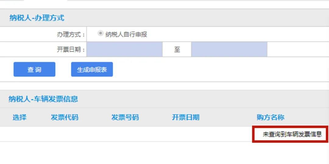 网上申报车辆购置税为什么会提示未查询到车辆发票信息?