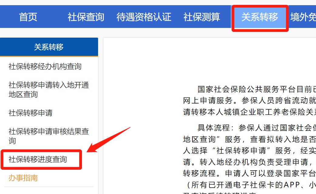 通过掌上12333APP查询:服务—人社服务—社会保障—社保关系转移—社保转移进度查询。