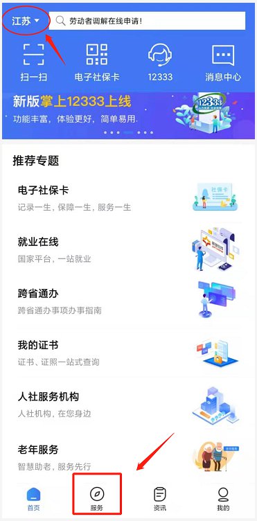 第二步:切换至转入地"江苏”,在页面中找到并点击【服务】,如下图所示;