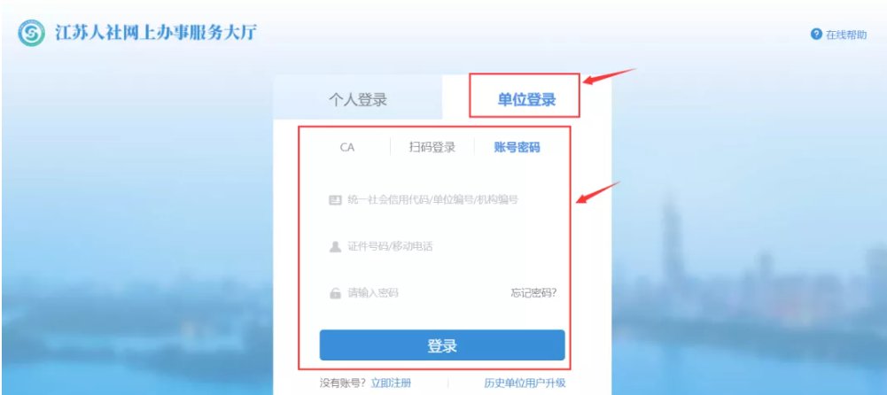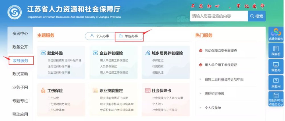 ▶登录江苏省人社网上办理大厅,点击“单位办事”