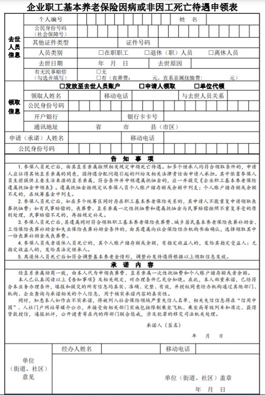 企业职工基本养老保险因病或非因工死亡待遇申领表》》》点击下载