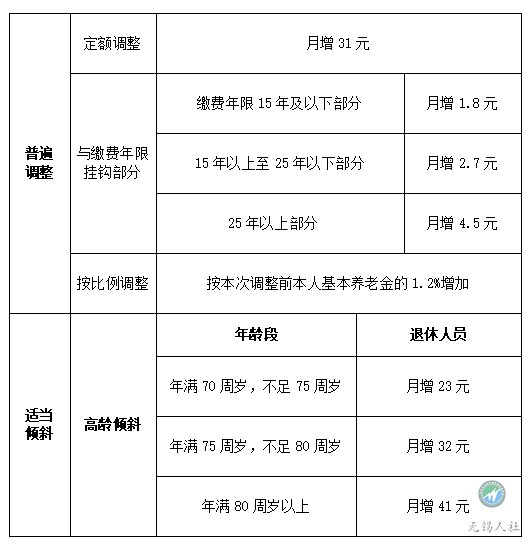 某退休人员今年76岁,缴费年限30年,本次调整前月基本养老金为3500元,那么此次调整后月基本养老金应为:3500+31+(15×1.8+10×2.7+5×4.5)+(3500×1.2%)+32=3681.5元,增加181.5元。