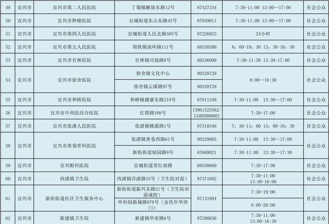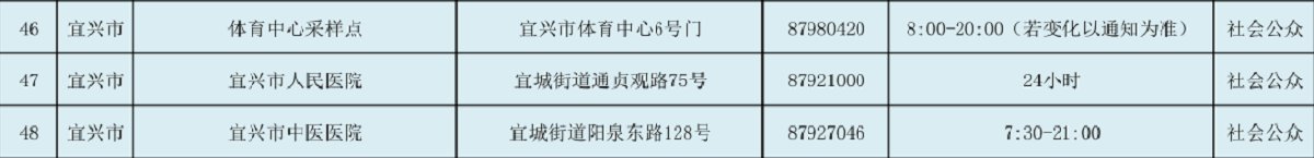 宜兴新冠病毒检测采样服务点名单(2021年7月24日更新,来源:健康无锡)