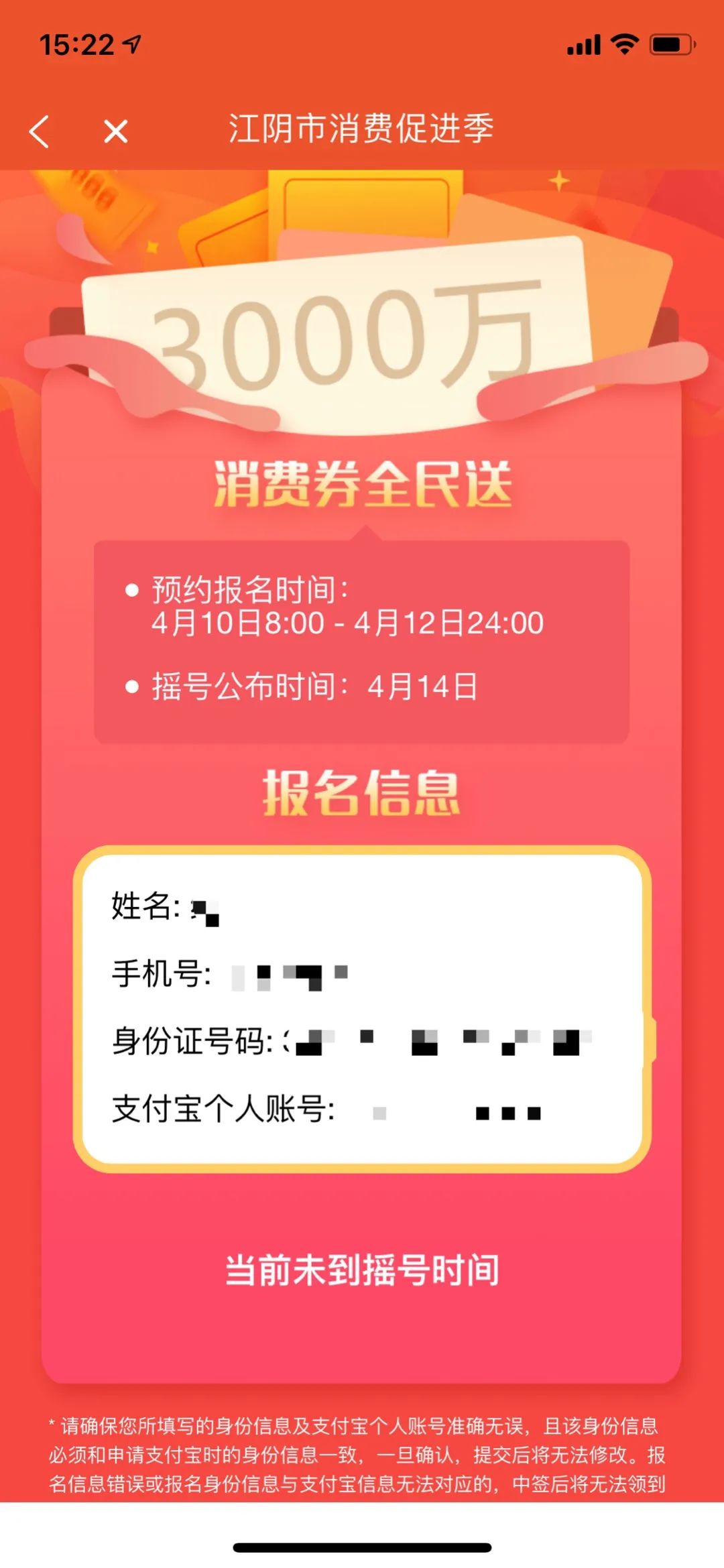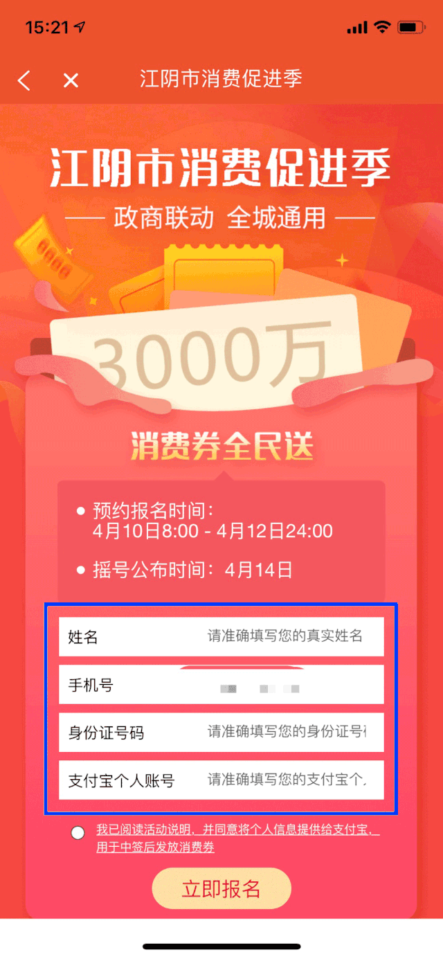 报名信息错误或报名身份信息与支付宝信息无法对应的,中签后将无法领到消费券。