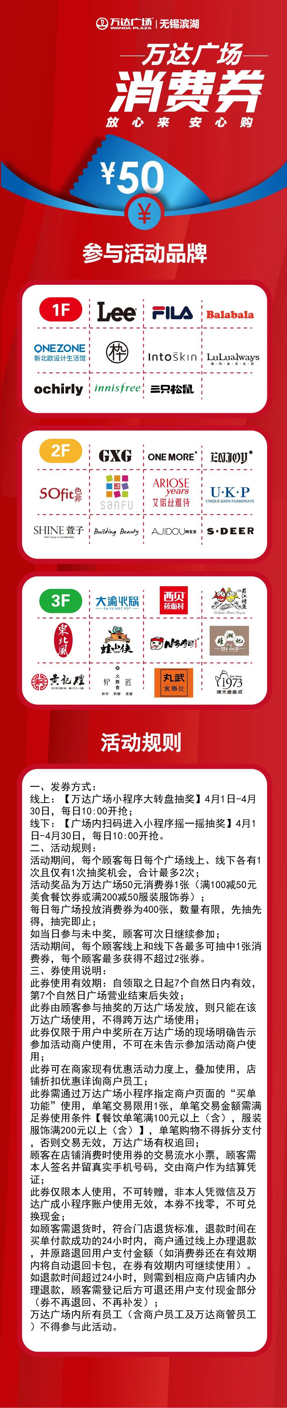 2020无锡滨湖万达广场消费券活动规则+活动店铺