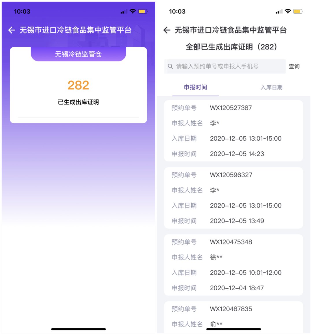 为使市民了解市售进口冷链食品新冠病毒检测情况,杜绝申报伪造检测出库证明行为,保障广大市民健康,现灵锡APP【进口冷链食品申报追溯系统】新增—【无锡监管仓出库证明查询】功能版块。该版块可提供无锡市冷链监管仓所有已生出库证明数量展示,同时支持无锡市所有监管仓按条件搜索出库证明,广大市民及相关部门工作人员可在该版块查询已生成出库证明的详细信息。