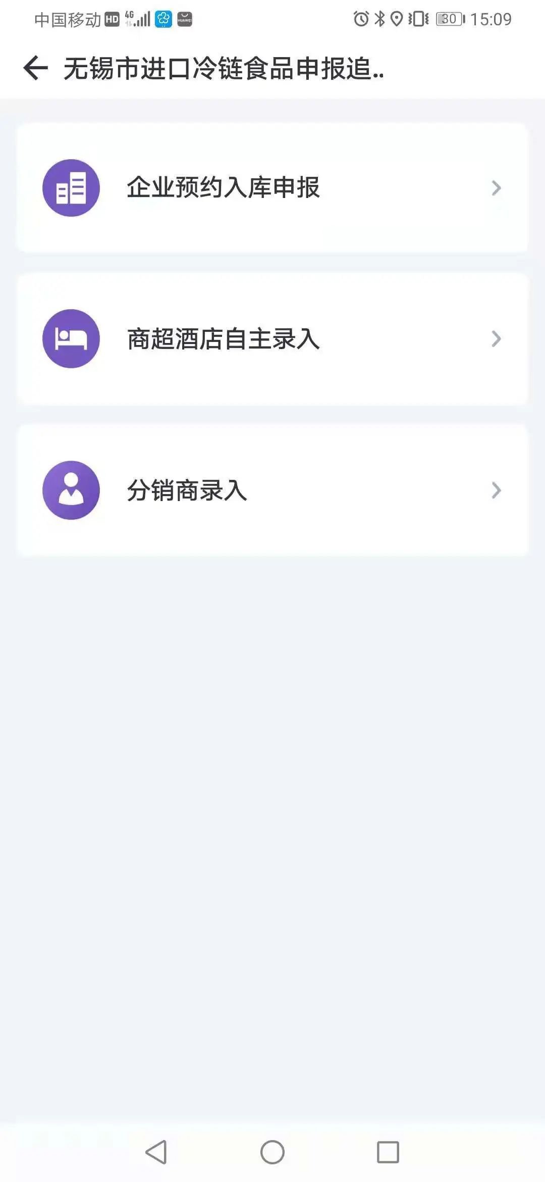预约入口:“灵锡App”,在“进口冷链食品申报追溯系统”栏目