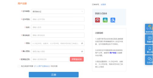 第一步,首次登陆的申请人需进行实名注册及认证。点击“立即注册”,录入居民身份证信息、姓名、移动电话,设置密码。注册完成后,即可通过登录系统。
