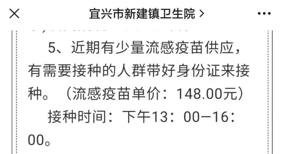 根据宜兴新建镇卫生院流感疫苗接种价格: