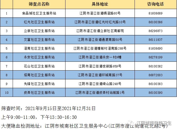 2021江阴城南社区卫生中心免费筛查大肠癌通知(时间+地点+项目)