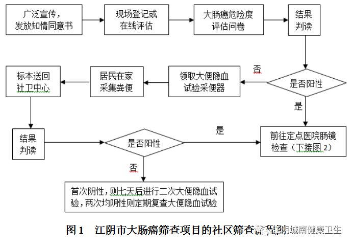 辖区内有意愿的居民可携带身份证、户口本和《江阴市社区居民大肠癌筛查知情同意书》到就近社区卫生服务站进行登记,由工作人员对居民开展筛查工作。《江阴市社区居民大肠癌筛查知情同意书》由镇、村两级工作人员向适龄居民发放。
