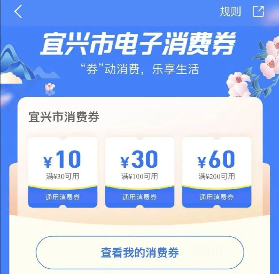 第三轮宜兴消费券从10月11日10:00 开始发放。