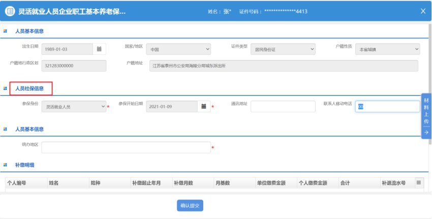 5.点击【确认提交】,完成人员用工参保登记业务办理。