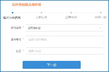 个人证件号码被占用申诉操作流程