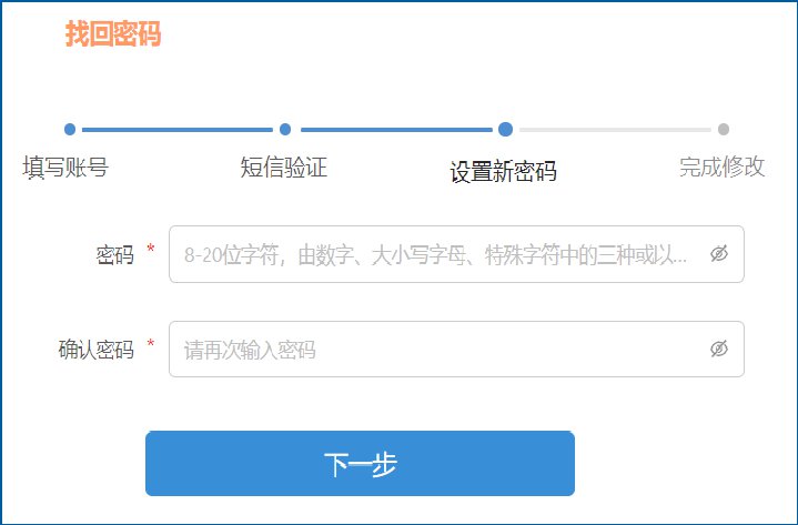 步骤一:个人用户忘记登录密码,可以通过此功能重新设置登录密码。在个人账号密码登录页面中点击“忘记密码”链接,按照提示进行操作。