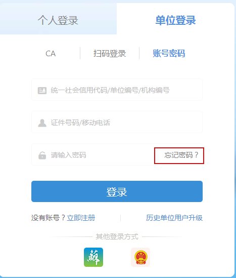 注:单位经办人通过江苏智慧人社APP扫码登录,无需输入密码!