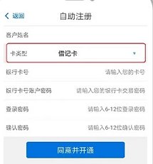 选择“已开通我行银行卡”的, 支持借记卡、信用卡注册