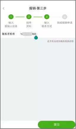 第三步:输入接受报销进程的联系方式