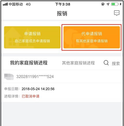 该报销对象的报销进程在“其他家庭报销进程”中查看
