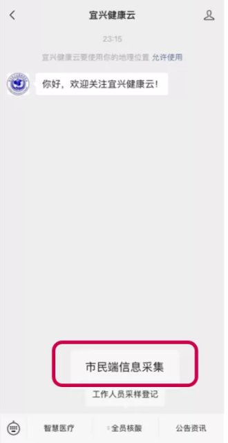 一、微信搜索并关注公众号“宜兴健康云”