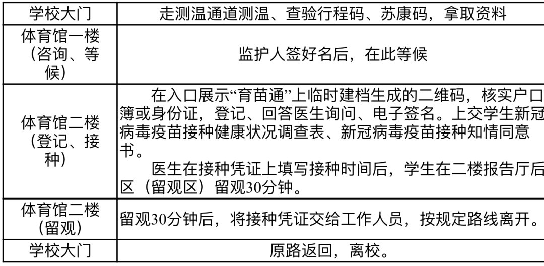 2.预约接种:因客观原因在集中接种时段未接种疫苗的学生,可向所在街道(镇)社区卫生服务中心预约接种时间,由学生监护人陪同前往接种。