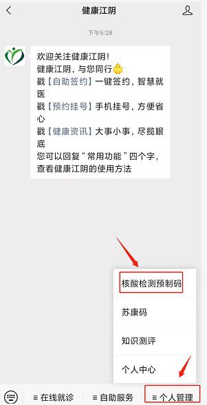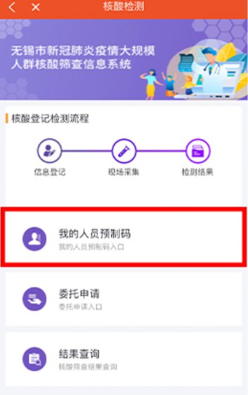 二、选择菜单栏“个人管理”,点击“核酸检测预制码”,即可进入注册页面
