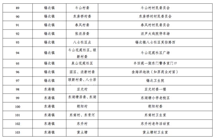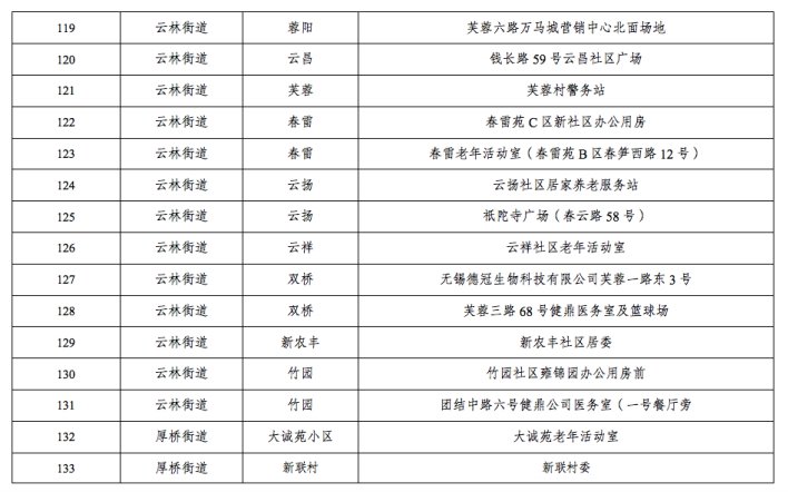 2021无锡锡山区全员核酸检测集中采样点地址