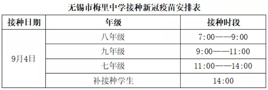 2021无锡梅里中学学生第二针新冠疫苗接种安排(时间+地点+材料)
