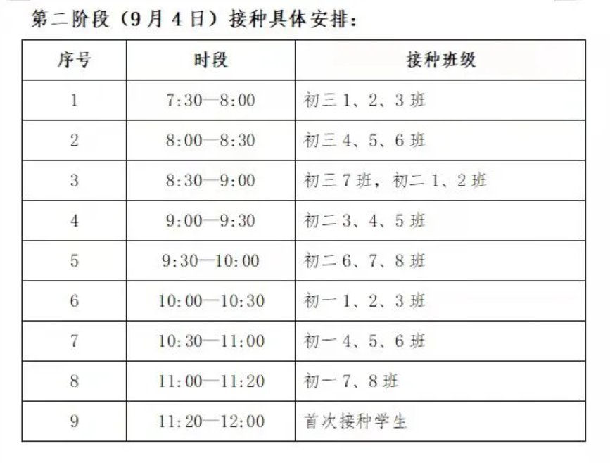 9月4日接种学校:无锡市新吴实验中学、