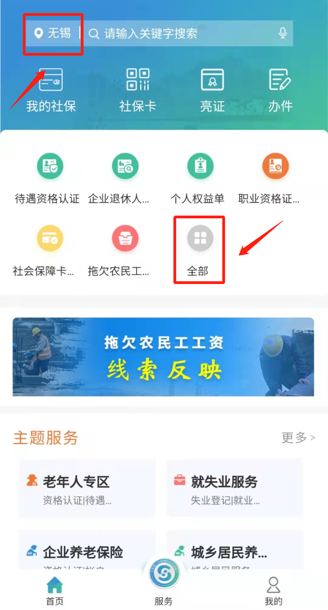 第一步:注册或登录“江苏智慧人社”APP,将地区更改为“无锡市”