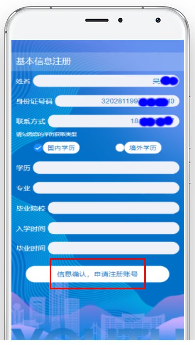 在最江阴APP“服务页面”找到“青年人才补贴”,点击图标即可进入申请平台。首次登录需要注册,系统将根据实名认证情况,自动获取姓名、身份证号码及联系方式。如果选择国内学历,学历相关信息将自动获取。如果选择境外学历,则需填写学历证书编号、入学时间、毕业时间等信息,信息确认后即可完成账号注册。
