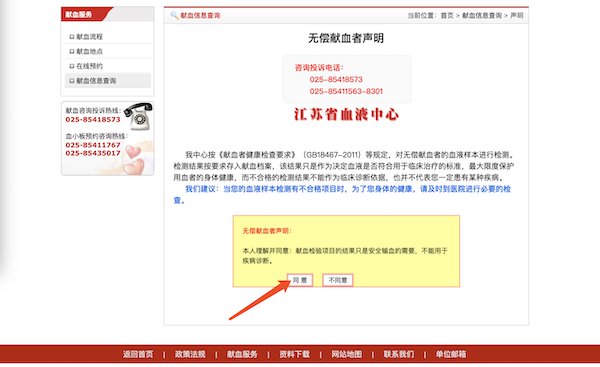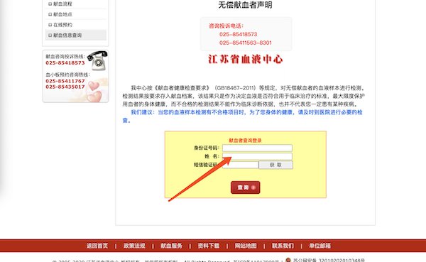 1、进入查询系统入口:江苏省血液中心,点击献血信息查询